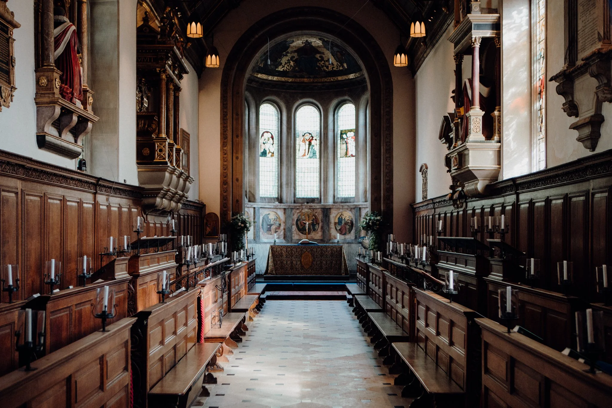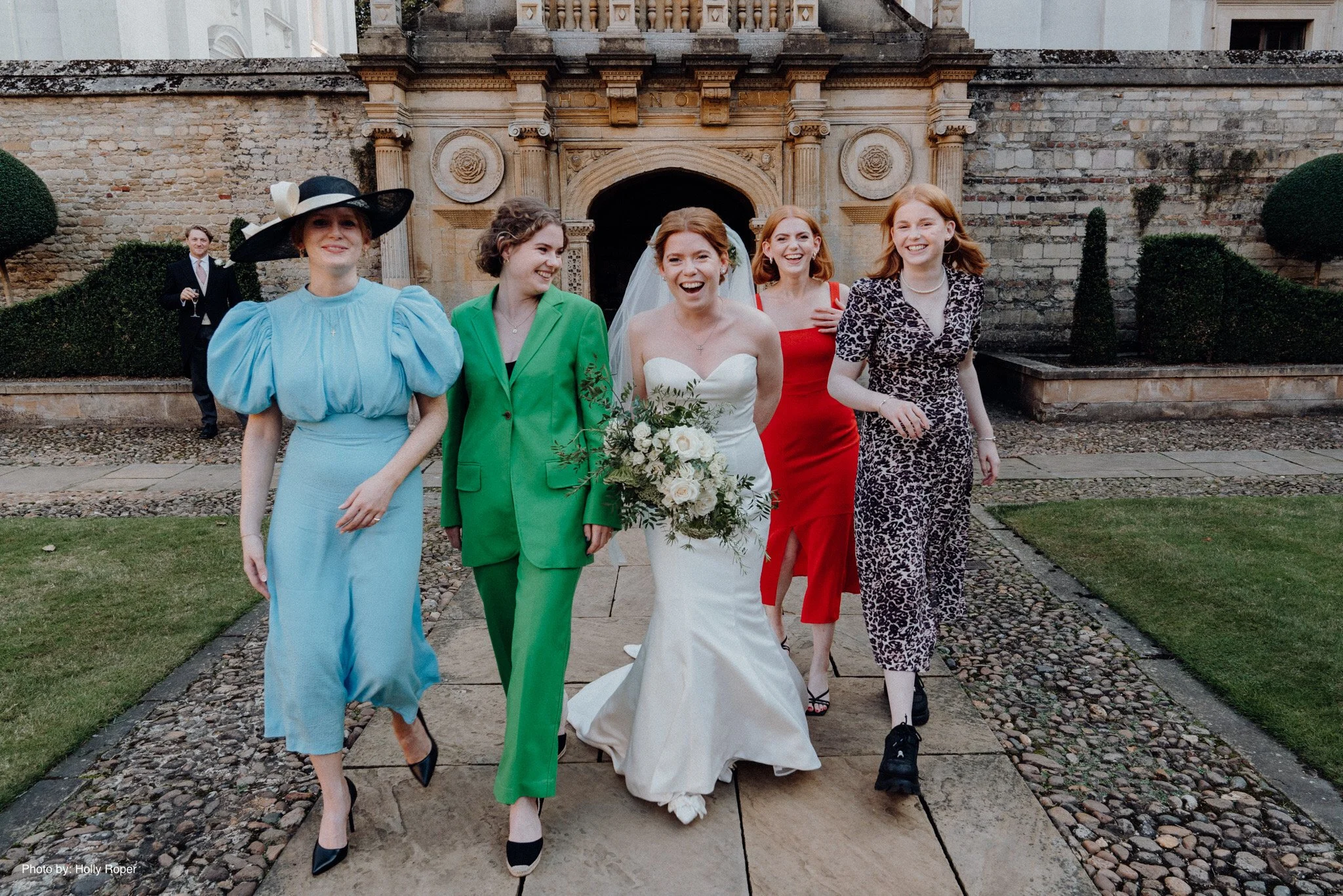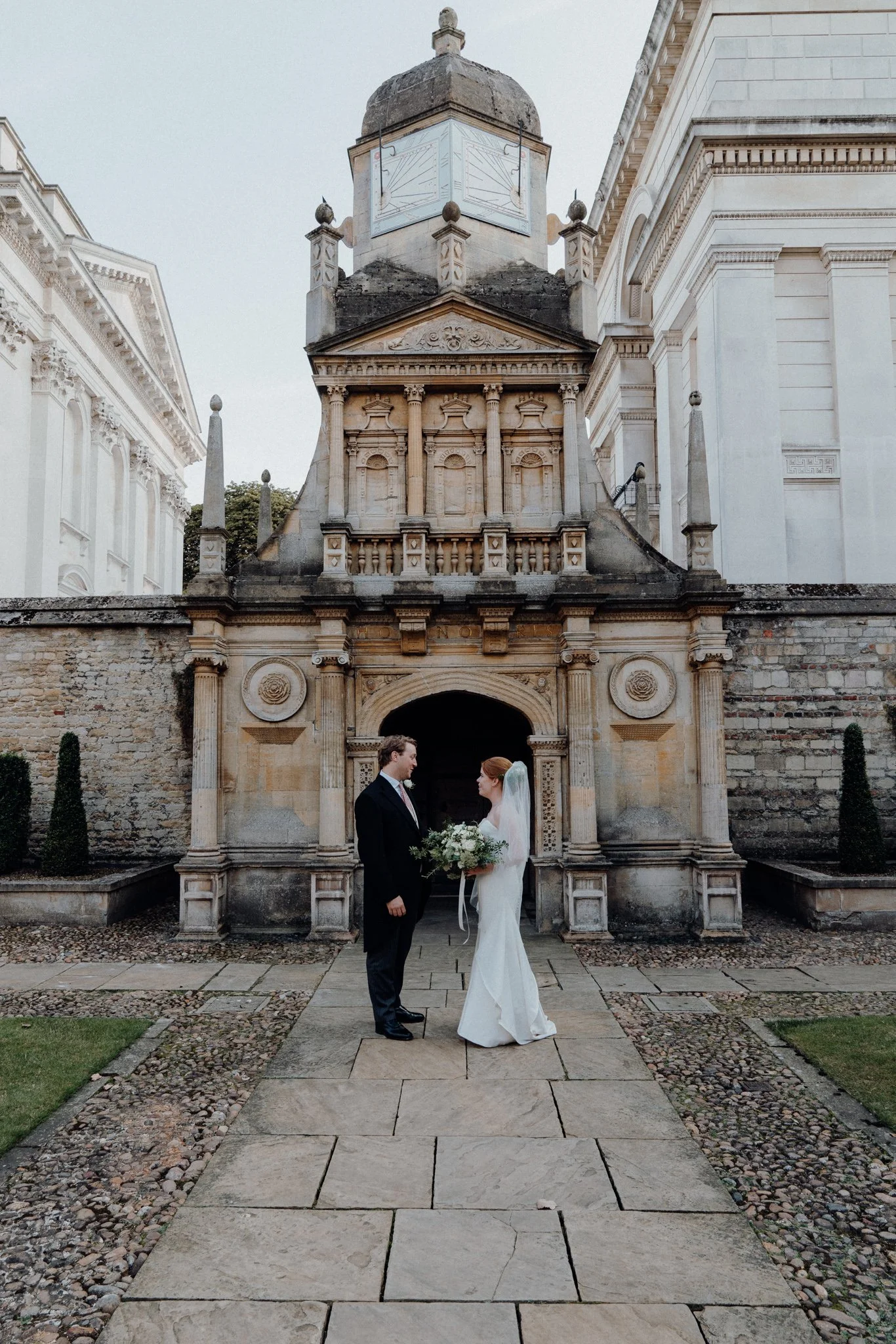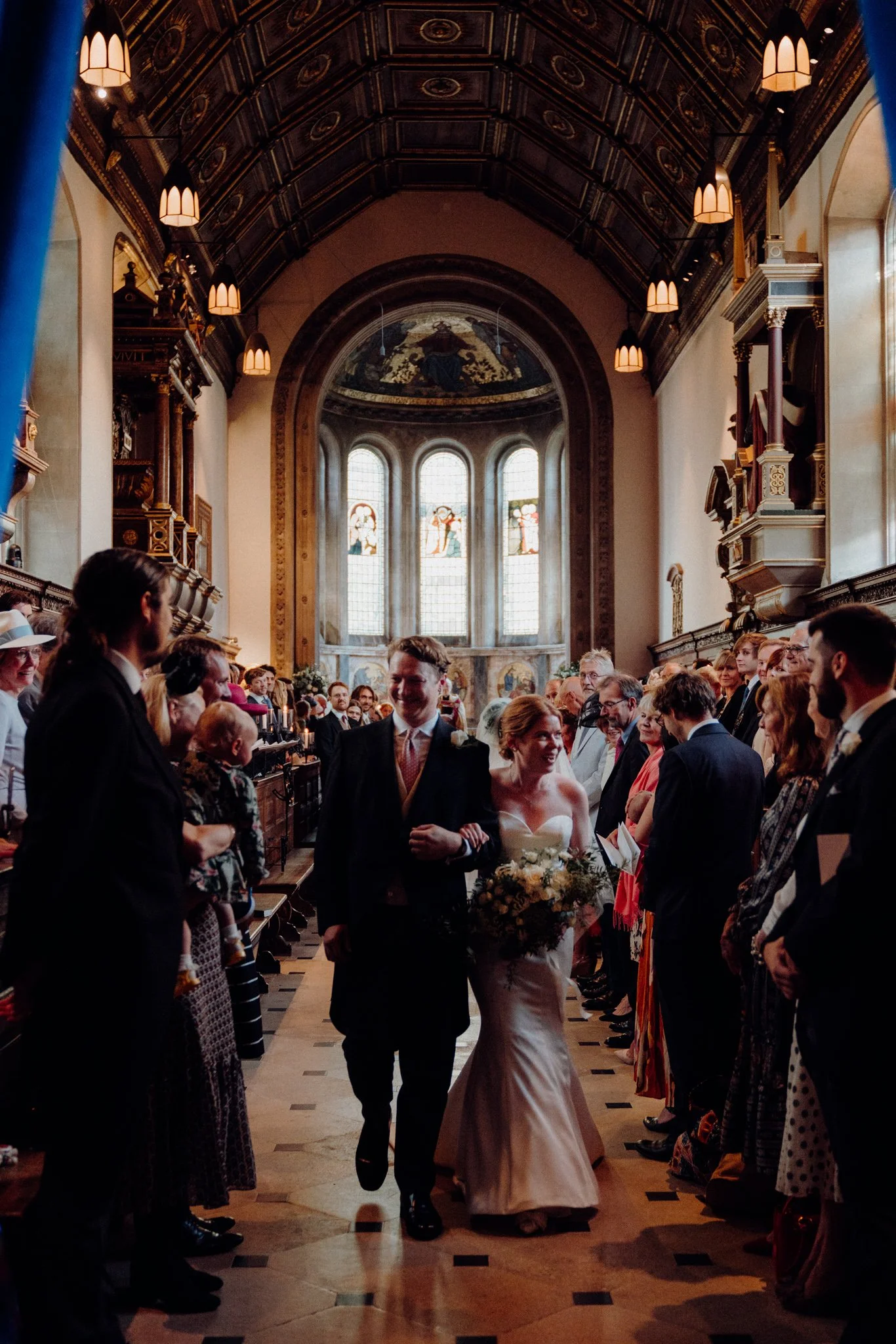 The marquee for this wedding was positioned in a spectacular walled garden within one of the Cambridge Colleges’. The tables were filled with large platters of food for the guests to feast upon which left little room for flowers. This conundrum was solved by placing tall glass vases of seasonal flowers and foliage in between the platters. With small bud vases and tall glass candlesticks amongst them the bride was able to achieve her dream of flowers, candles and food, all working together to create a stunning evening to remember.